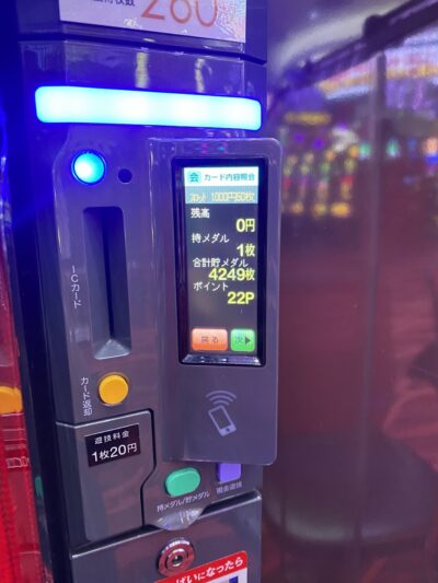 そこそこ出しているお店を発見してコツコツ5,000枚ほど貯玉をして貯玉内でプレイして+2750枚(550枚=1万円)増えれば換金。