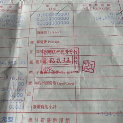 台湾に持ち込んだ日本円を台湾の銀行で台湾ドルに交換しました。