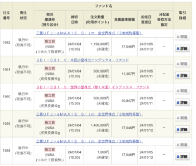 先ほどSBI証券の口座を見たら新NISAの買付360万円が完了していました。