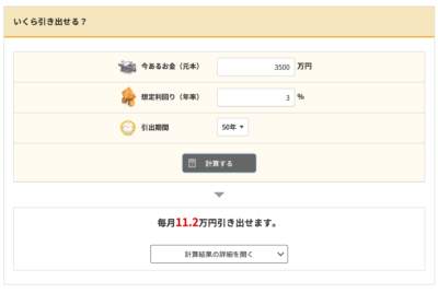 今回は3,500万円になった取り崩しシミュレーションをやってみたいと思う