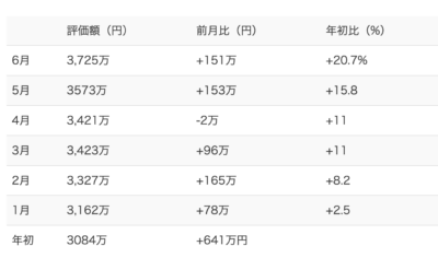 2024年6月の資産額3,725万円(前月比+151万円)