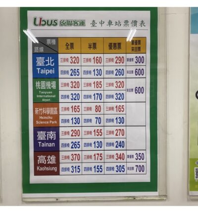 普通は悠遊カードで支払うと基本料金15元に10km以上で+10元加算されるので25元で台中駅へ行けます。