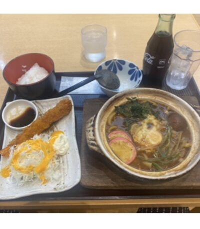 その後くつろぎ処でお風呂に入って味噌煮込みセットを食べる