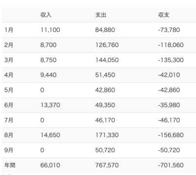 9月の生活費です。