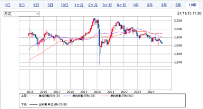 2021年7月を頂点に3年以上ズルズルと右肩下がりになっています。