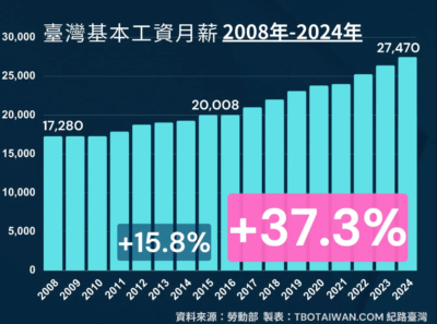 【コラム】台湾の最低賃金が2025年1月から時給190元(907円)へ値上げ