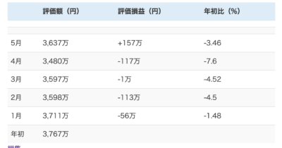 5月の運用成績は3,637万円(前月比+157万円)