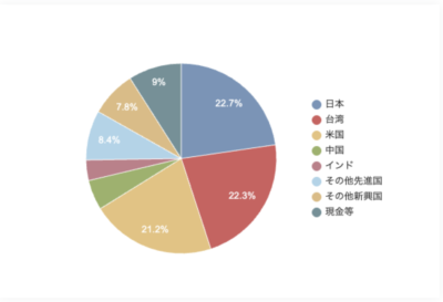 日本・台湾・米国を中心に世界中に分散して投資をするように投資をしています。