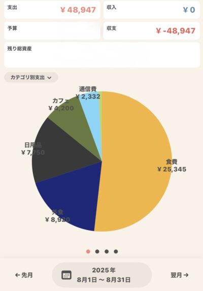 | 食費 | 25,350 | 自炊と弁当代 | ||