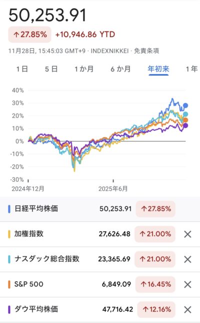 去年の11月は日本株と台湾株は糞とほざいていましたが今年は好調、分散投資最高(笑)…間違えて削除してしまったので再投稿#寝金減投資#TradeNote https://t.co/wrJQvZ92n2 pic.twitter.com/AsPQCrjnah— cub (@cub_nomad) December 6, 2025