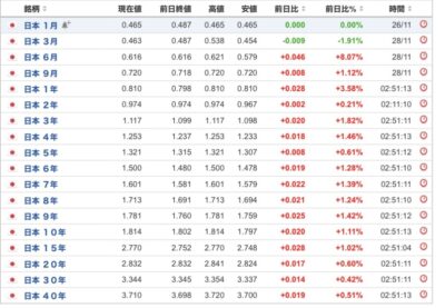 11月の日本債券