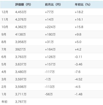 【2025年12月】【資産運用】12月の資産運用は4,453万円(前月比+77万円)大幅プラスで今年は終了となりました