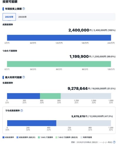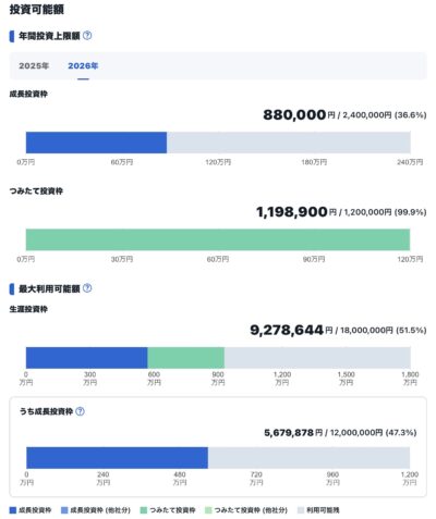 私は資産が少ないので全ての枠1800万円満額投資をすることが出来ませんでした。