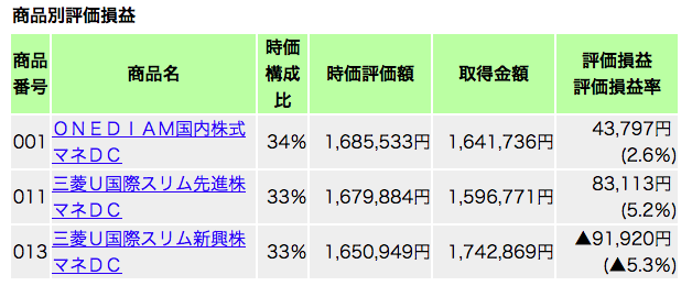 確定拠出年金の運用成績