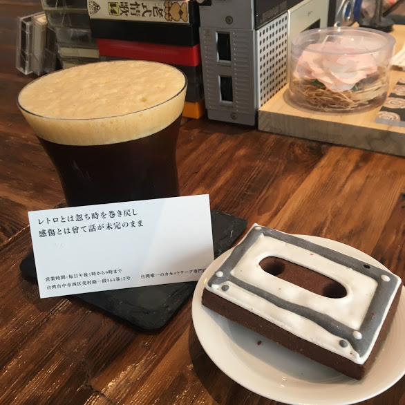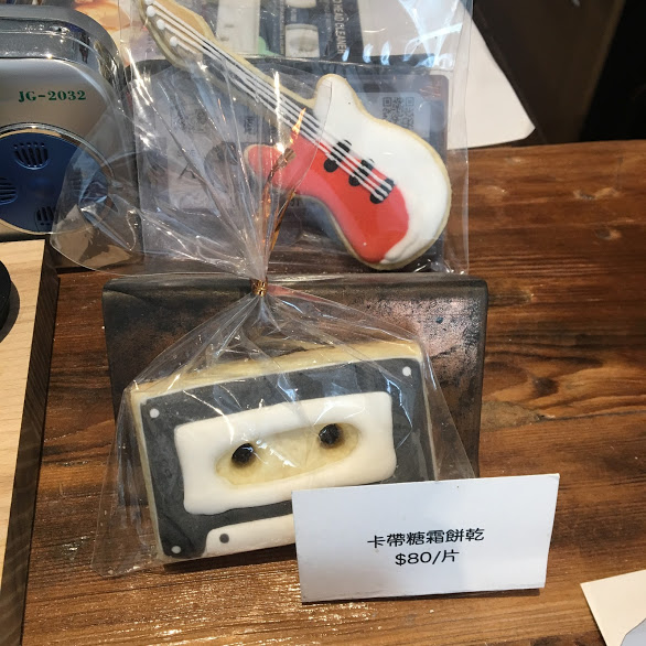 コーヒーは一杯100元370円 カセットテープ型のクッキーは80元300円