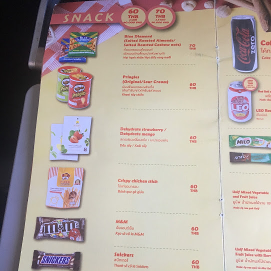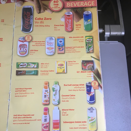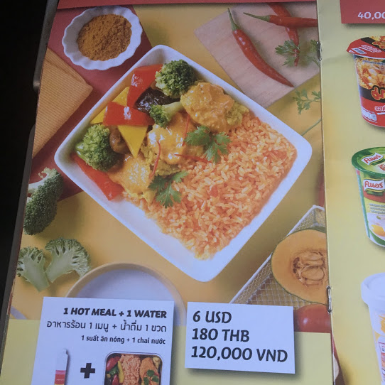 機内食は米ドル・バーツ・ドン払いで可能のようです。