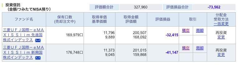 | eMAXIS Slim 先進国株インデックス | 168,092円 | -32,415円 | -16% |