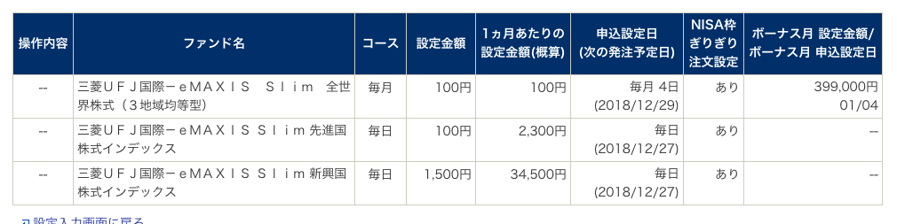 購入する投資信託は2019年1月4日にeMAXIS Slim全世界株式(3地域均等型)を一括投資