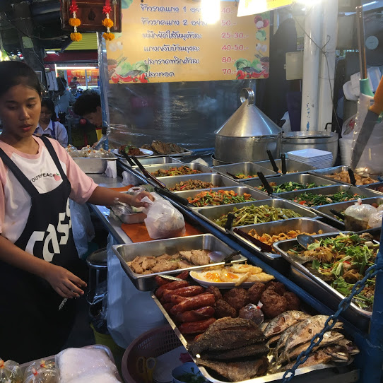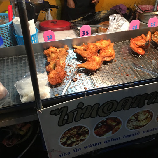 サラダを売っている屋台があったので購入30バーツ(100円)タイ屋台料理は野菜不足になりがちですからこれは嬉しいですね。隣のフルーツは最初パパイヤだと思って購入してのですがマンゴーでした。甘くて美味しい20バーツ(68円)