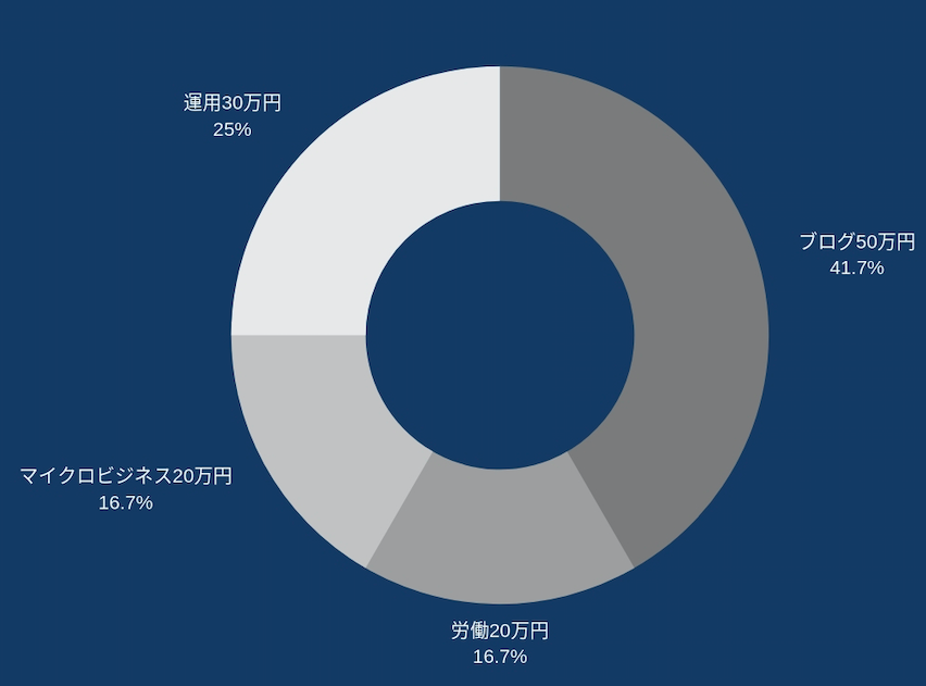 2019年の収入は120万円とする。4つの収入源で収入を分散