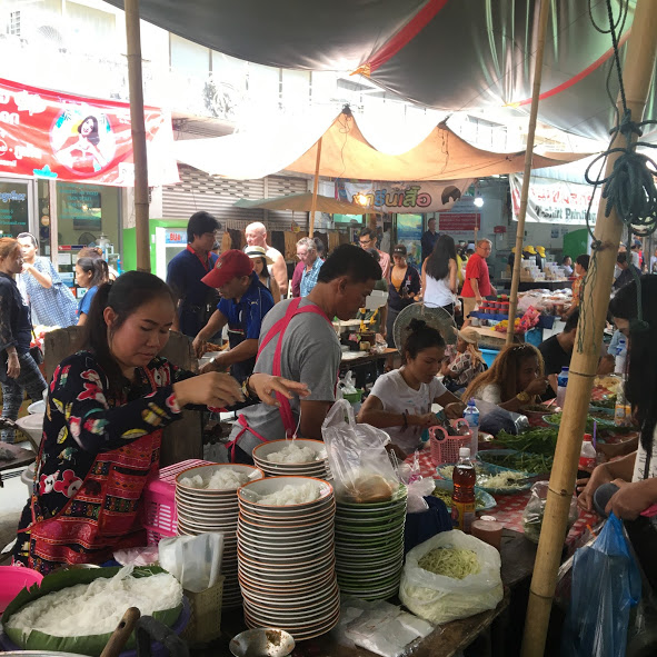 驚いたのはこんなタイ人しか利用しないような現地の人のための市場にも沢山のファランがいたことです。