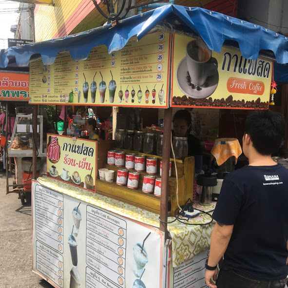地元のタイ人おねーさんが作ってくれるタイコーヒーをここで注文。一つ30B