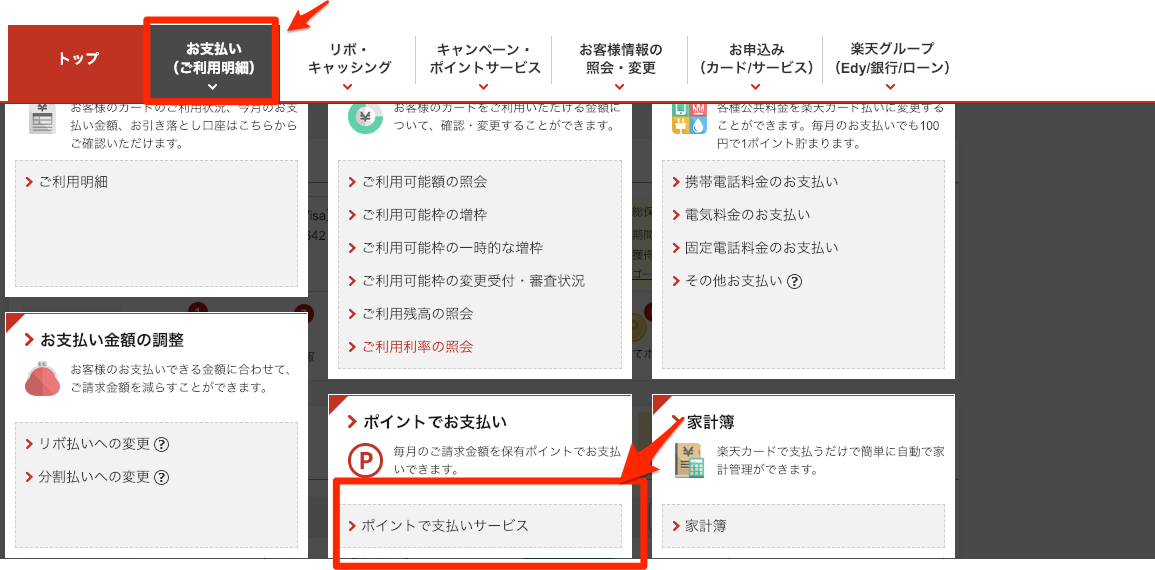 楽天ポイントをカード支払いに当てる方法