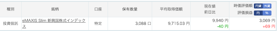 購入している投資信託は「eMAXIS Slim新興国株インデックス」です。