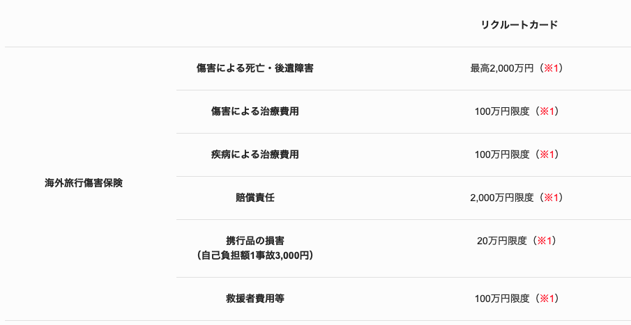 これらの保険の合計額となります。ただしリクルートカードは利用付帯となり注意が必要です。