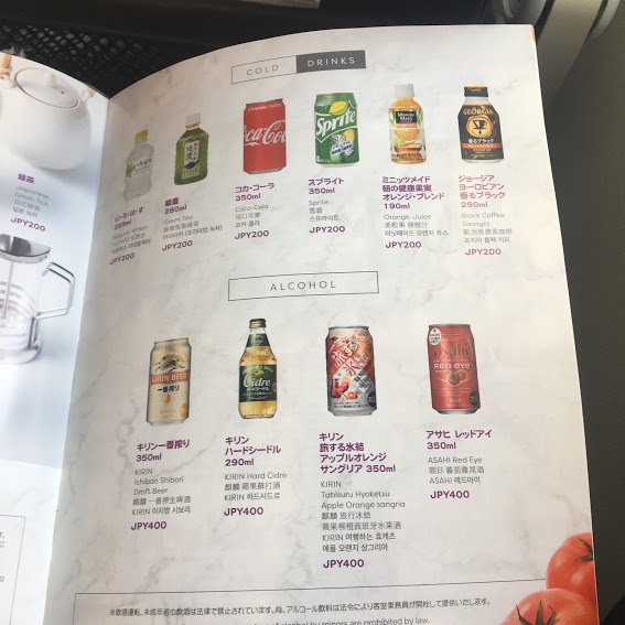 当日機内で注文すると食事のみ850円となっています。