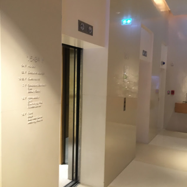 6階へ行きピザ屋さんの横にヒルトンと書かれたガラスの扉があるのでそこへ入って行き階段を上がっていくとヒルトンホテル行きのエレベーターがあるのでそこから乗れば行けます。
