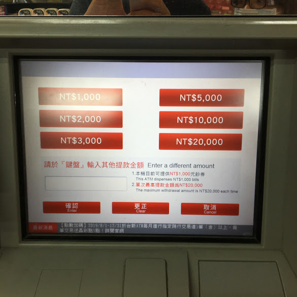 また同じカードでも別の日なら同じATMで二万元まで下ろすことができます。