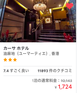 あの頃は円高により相対的に香港の物価が安く感じていたのですが、今は物価が下落・・特にホテル価格が下落しています。