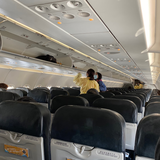 搭乗率は1割ぐらいで、三列席に一人になるように調整していると思います。