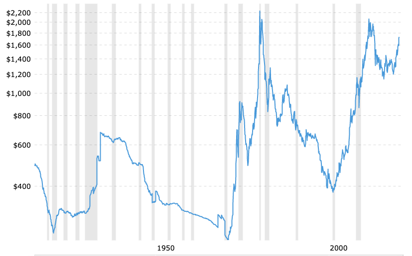 金は実はインフレにあまり強くない。数十年に渡り価格が停滞することは普通にあります。
