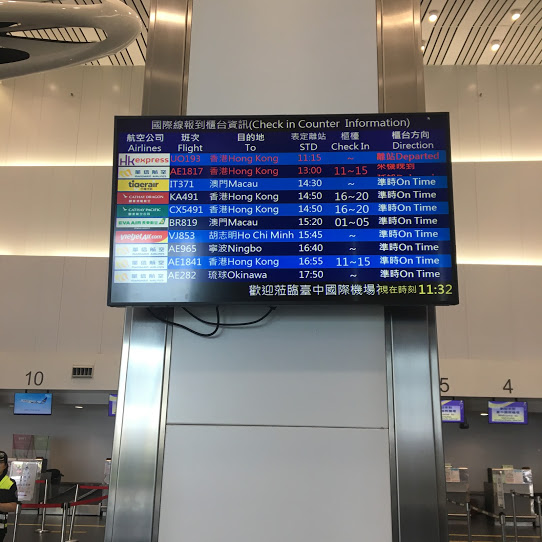 台中国際空港は小さな飛行場なので迷うこともなくスムーズに準備をすることができると思います。