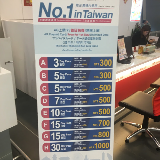 台中空港で購入できる中華電信は一番安いプランで5日間300台湾ドル1080円なので少し安いですね。