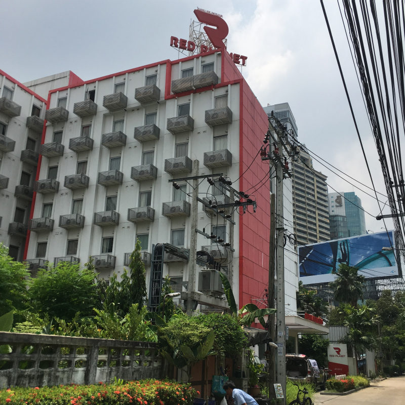 BRT駅から歩いて5分ほどの街のど真ん中にあるホテル「レッド プラネット ホテル バンコク (Red Planet Asoke, Bangkok) 」は値段が手頃でありながら清潔なホテルでおすすめできるホテルなので紹介します。