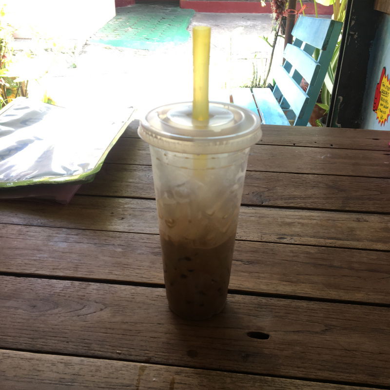 ホテルから出てこの店で甘ったるいタイコーヒーを飲むのが今の日課。35バーツ120円