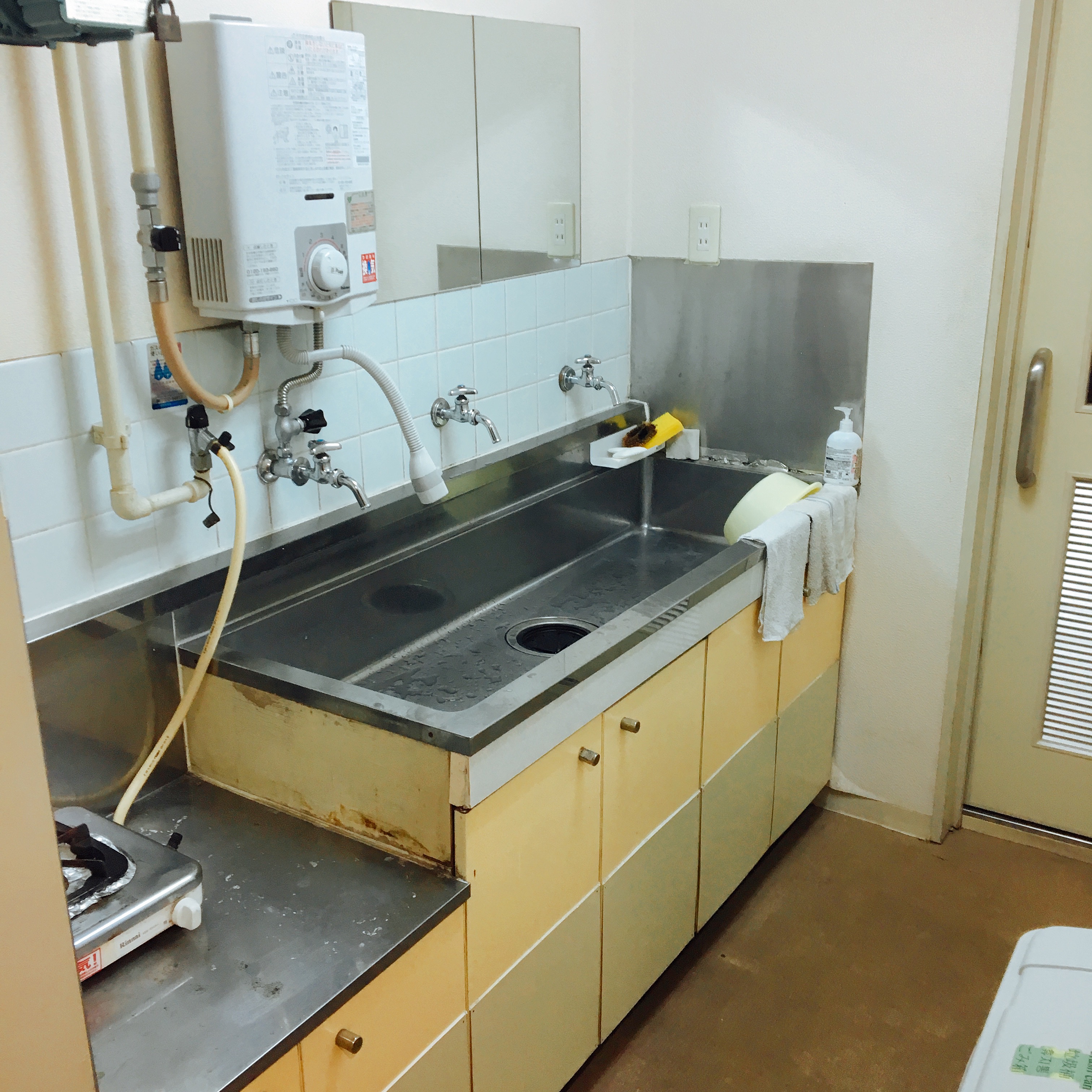 各フロアーにはこのような洗い場がありここで顔を洗ったり簡単に水を沸騰したりすることができます。