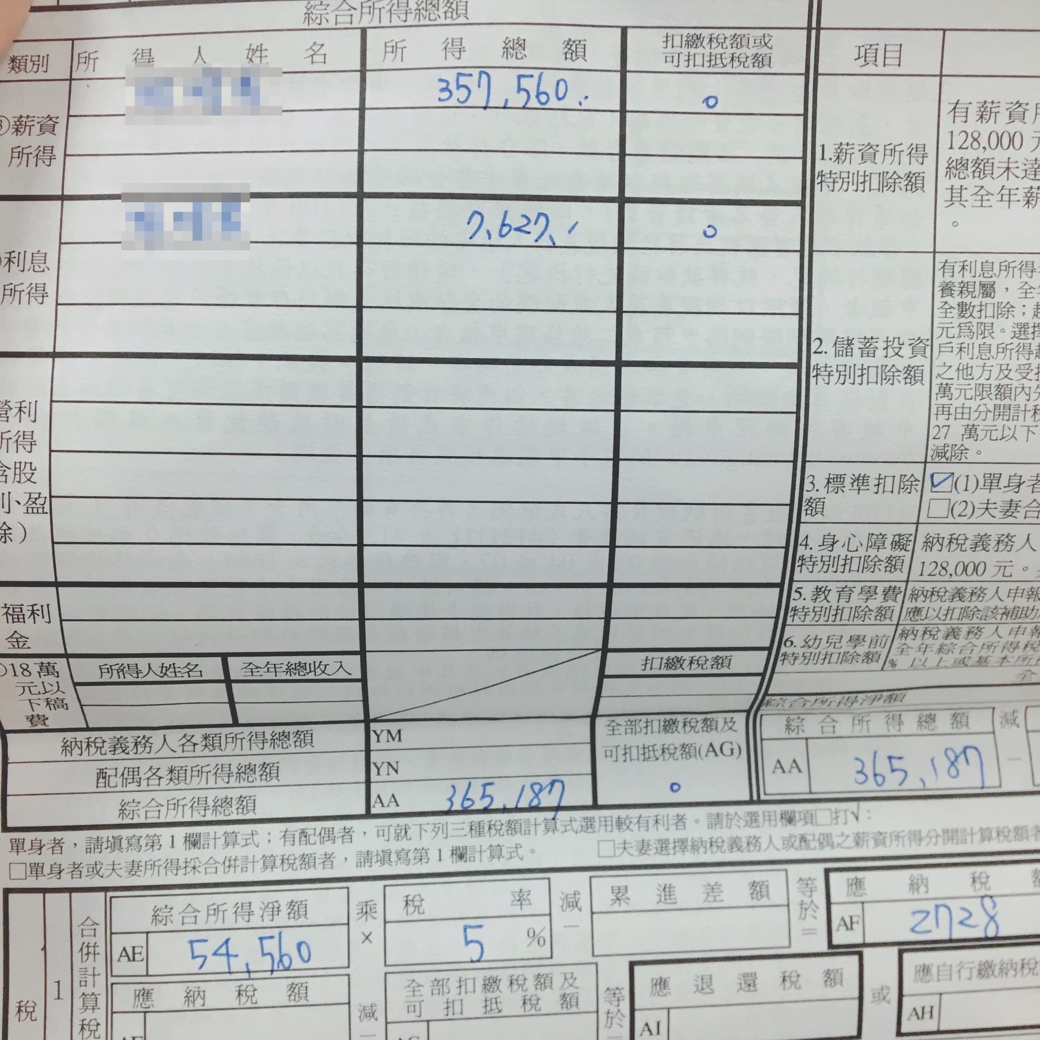 面白いのは利子が7,600元あると申告書に書かれていることです。日本は基本分離課税なのでないですよね?