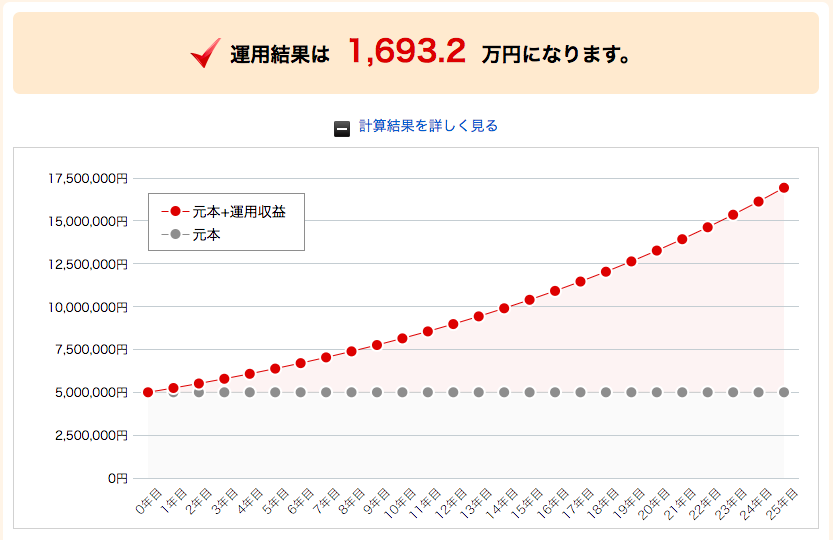 リスク資産100%で20年運用株式のリターンが5%とすると