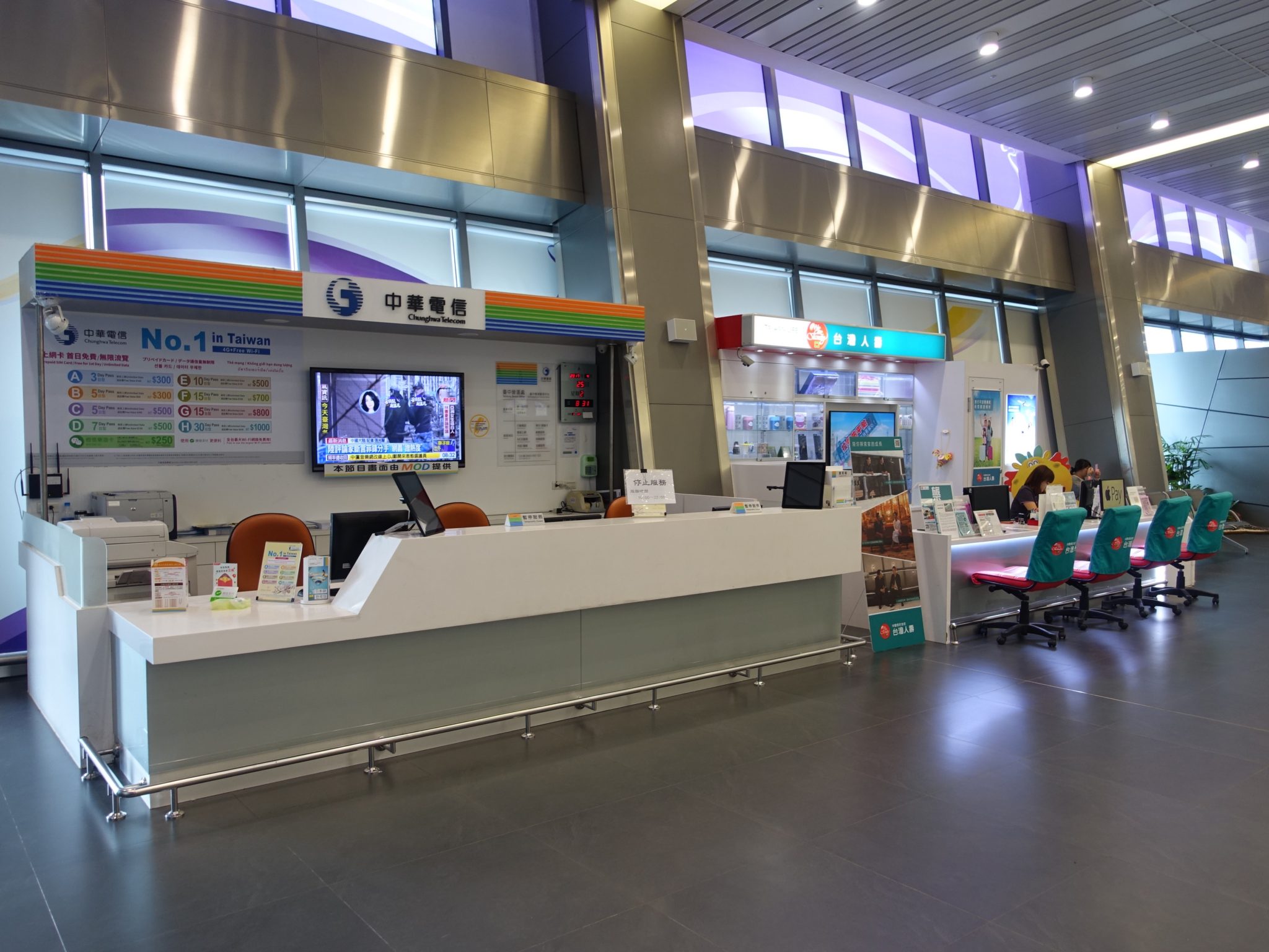 中華電信のSIM購入カウンターあり、営業時間は10時〜