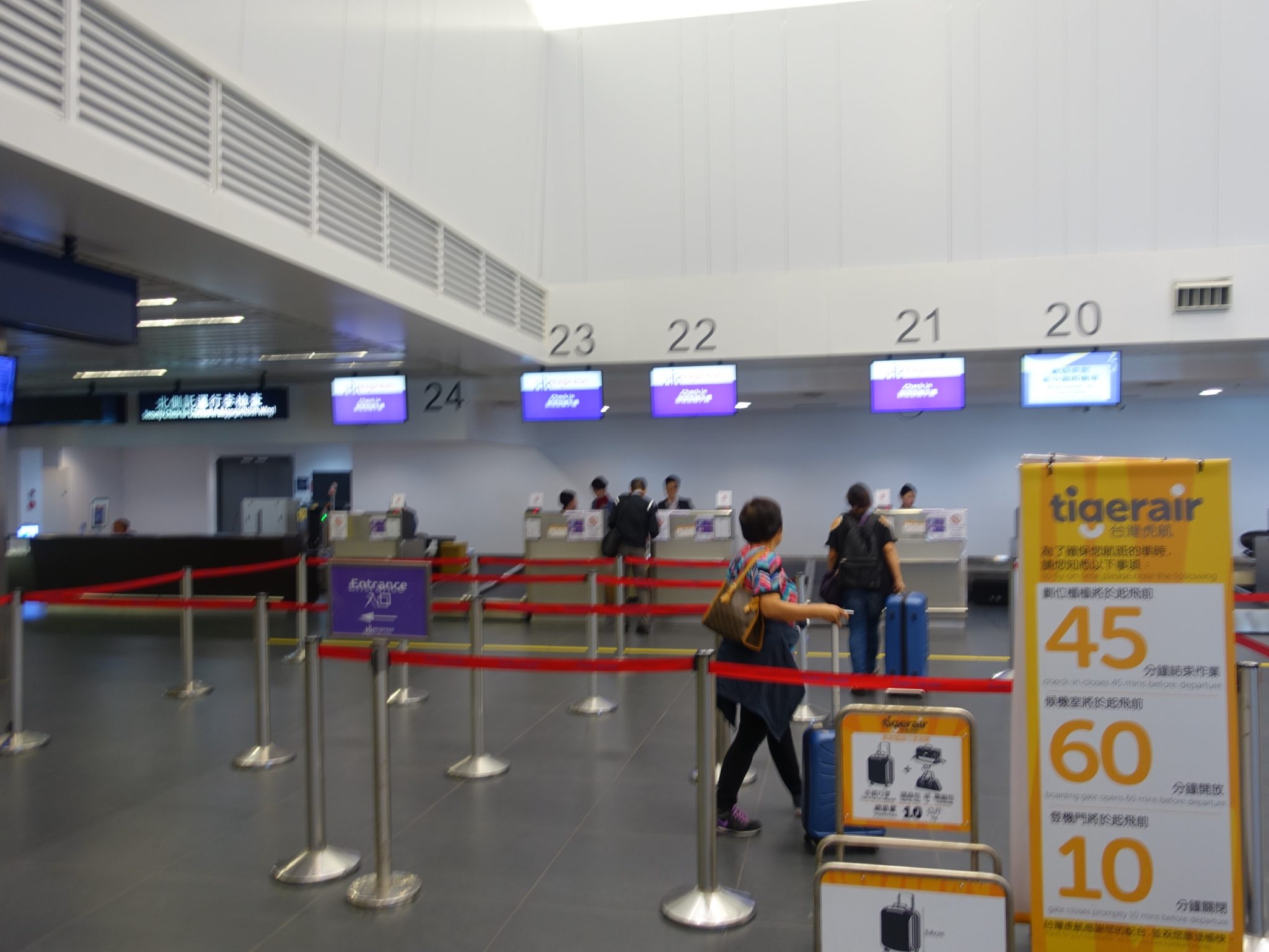 今回は少し早く9時前に来たのですが、ガラガラで香港エクスプレスのチェックインカウンターはほとんど誰もいなくてすぐにチケットを発行してもらえました。