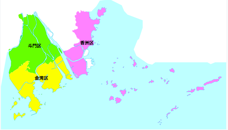 行政区分は大きく3つ (斗門區・金灣區・香洲區)