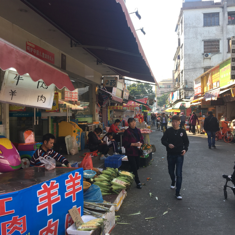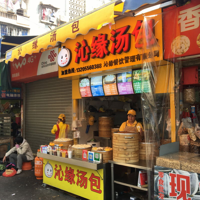 一食10元前後の大衆店が沢山あります。スーパーや八百屋も同様に沢山あります