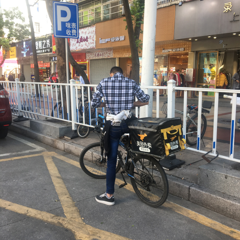 中国のuber eate(美團外賣 )深センでは電動バイクで走っていましたが珠海では自転車で配達している人も多かったです。