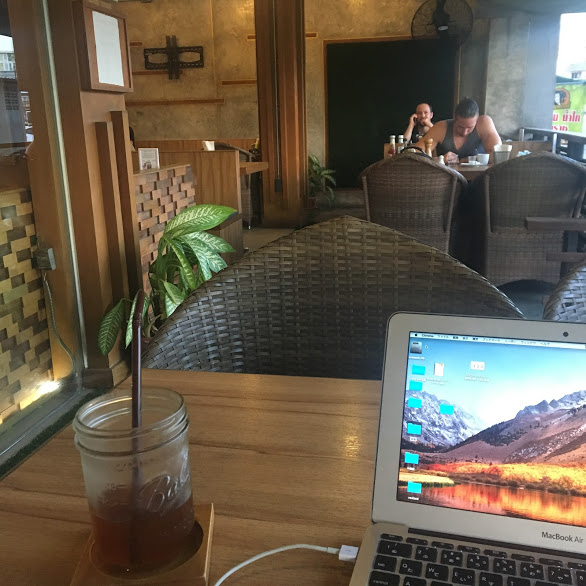 アイスコーヒーが一杯70バーツ(240円)とこの辺のカフェにしては良心的です。
