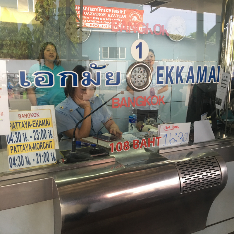 前回パタヤを訪れた時はエカマイ駅からパタヤへ行ったので今回はモーチット行きのバスに乗ってみようと思い、モーチット行きのバスを購入しましたが・・・これが激しく後悔することに・・・