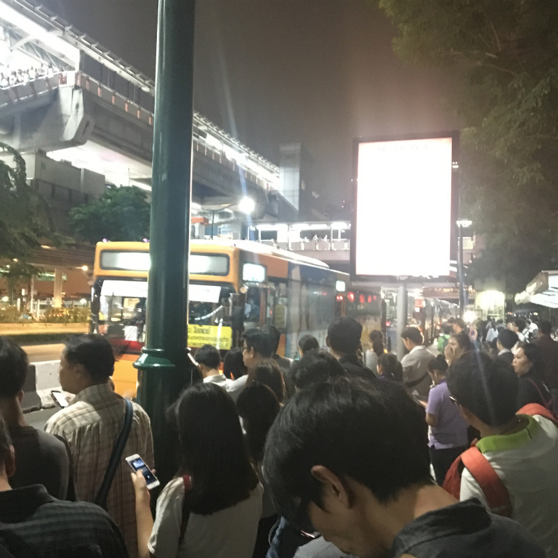 チャトチャック公園前は凄い人ですが、BTRの階段近くの入り口に空港行きのバス停があります。